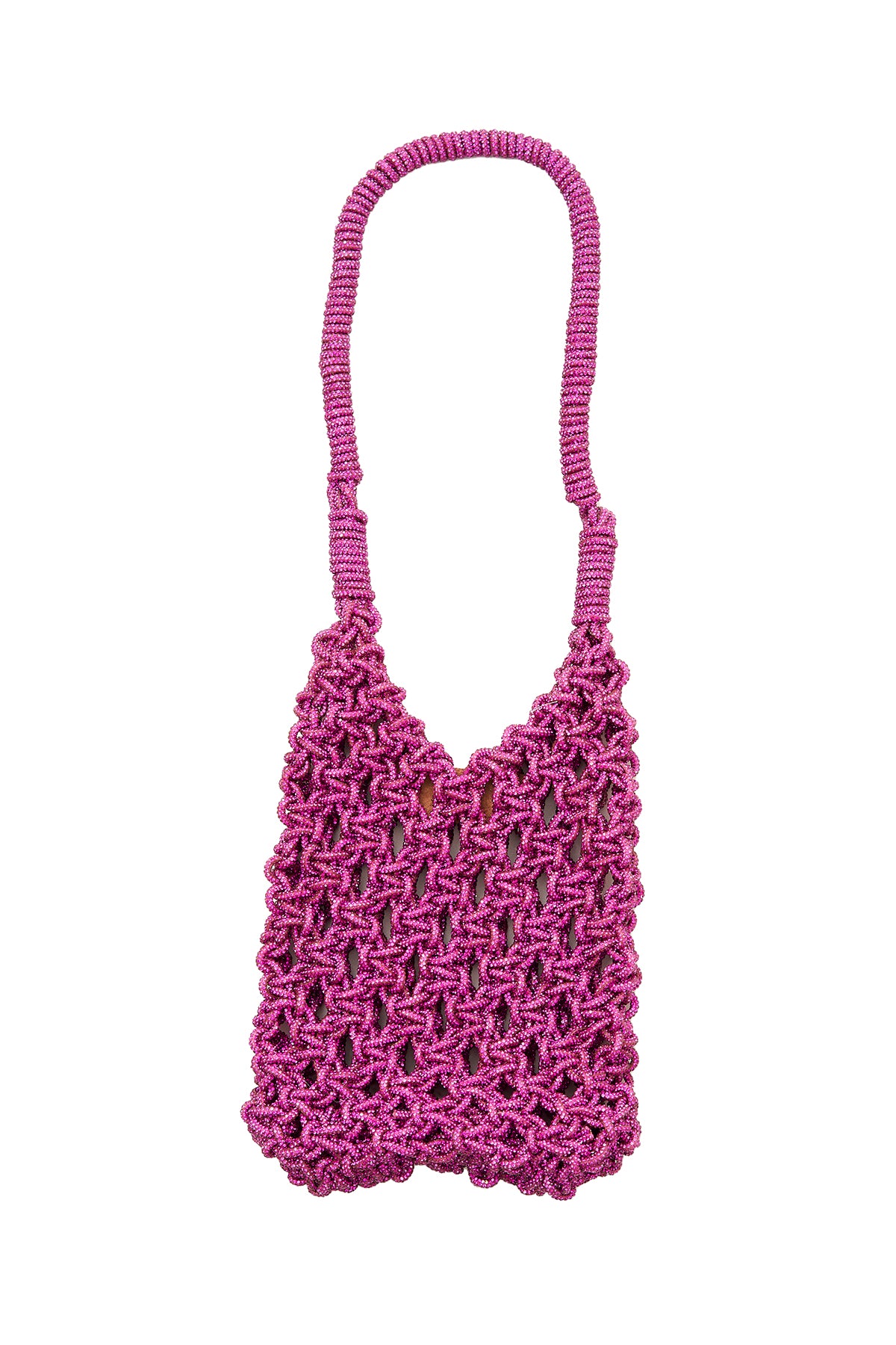 A peça apresenta uma rede tecida à mão com fios de cristais preciosos, perfeita para ocasiões especiais