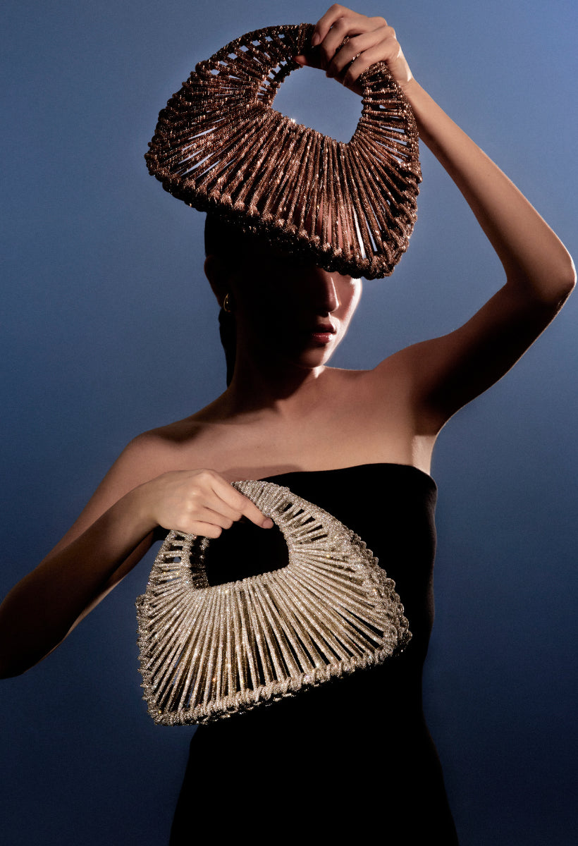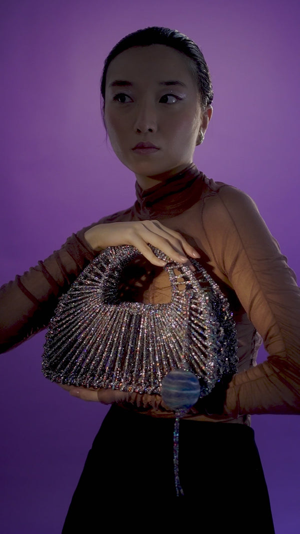 A bolsa Meteoro é aquela peça que você procura quando quer inovar no look. Com design ousado ela traz criatividade e os cristais trazem a elegância.