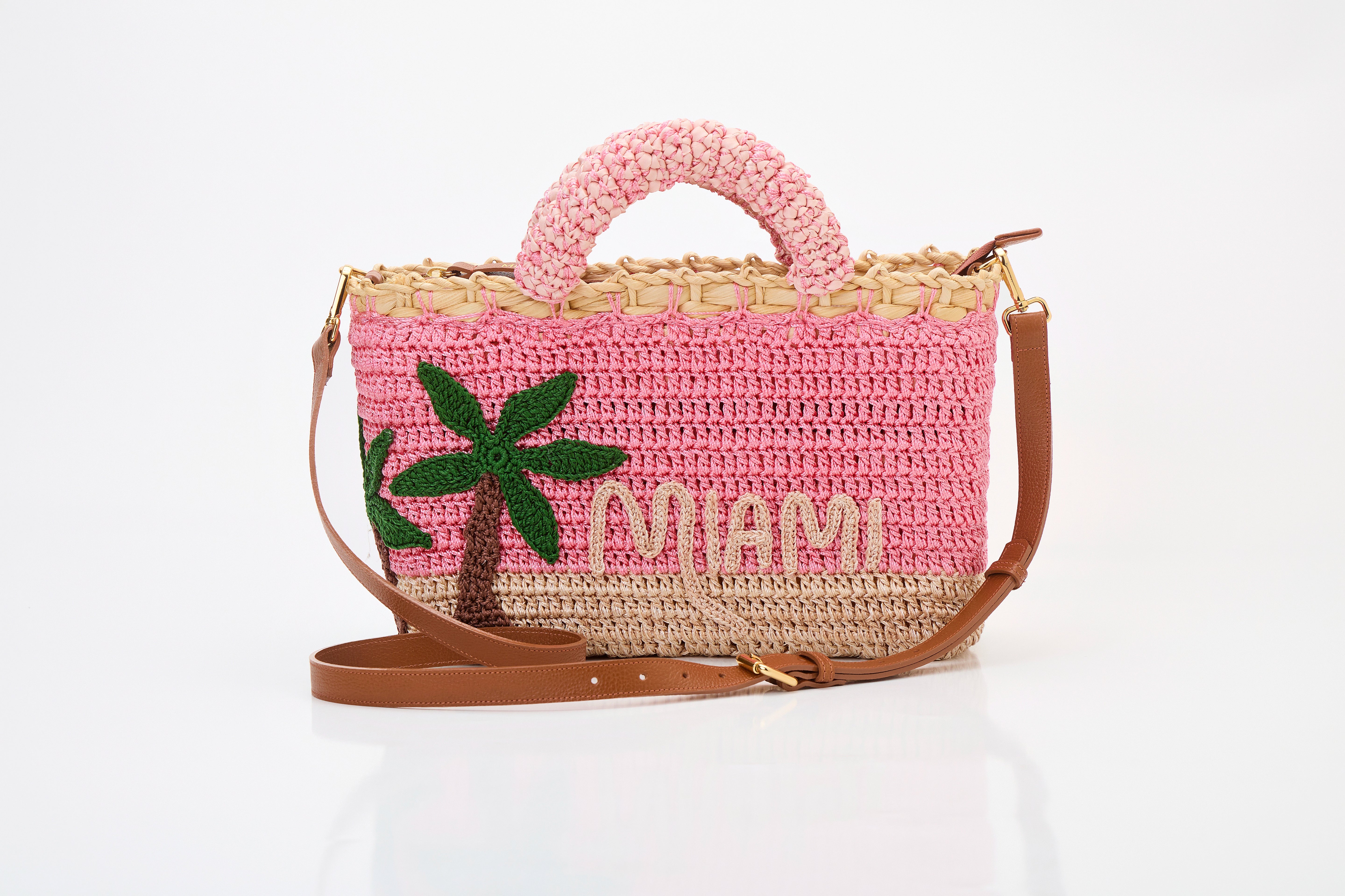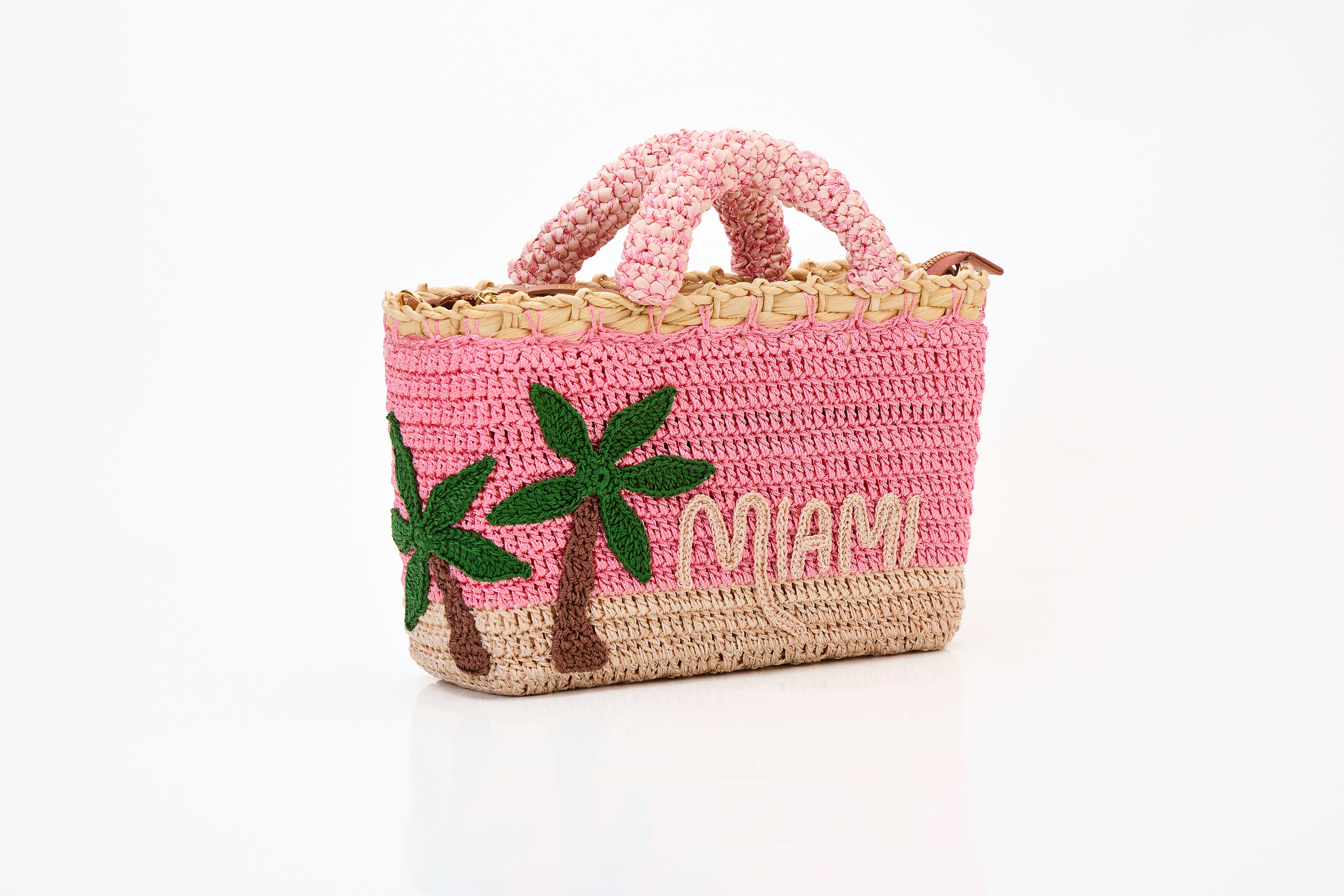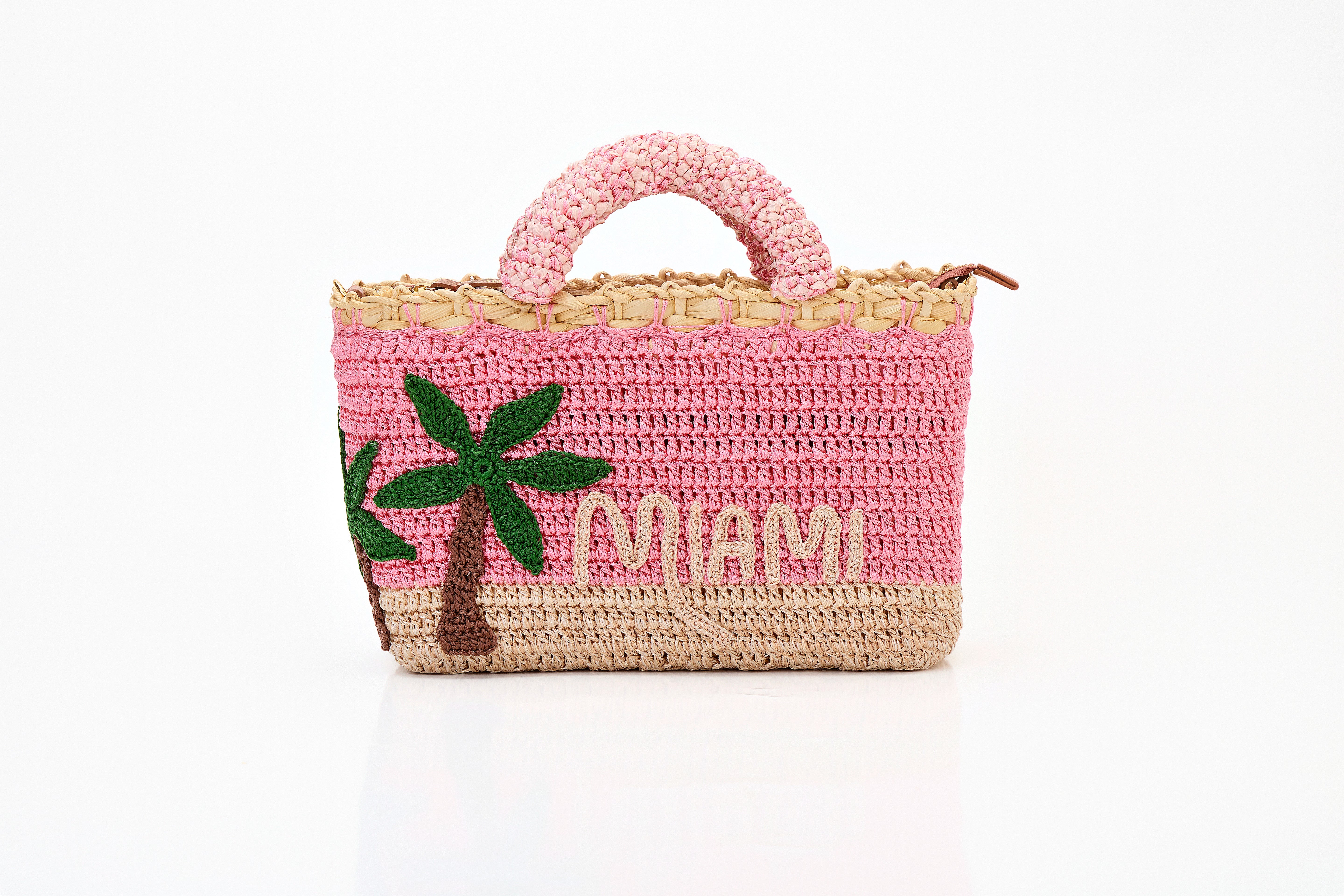 A bolsa de verão feita à mão inspirada na cidade vibrante e praiana dos Estados Unidos, Miami. Esta peça única é confeccionada com fibras naturais e o desenho feito 100% em crochê é autoral da marca.