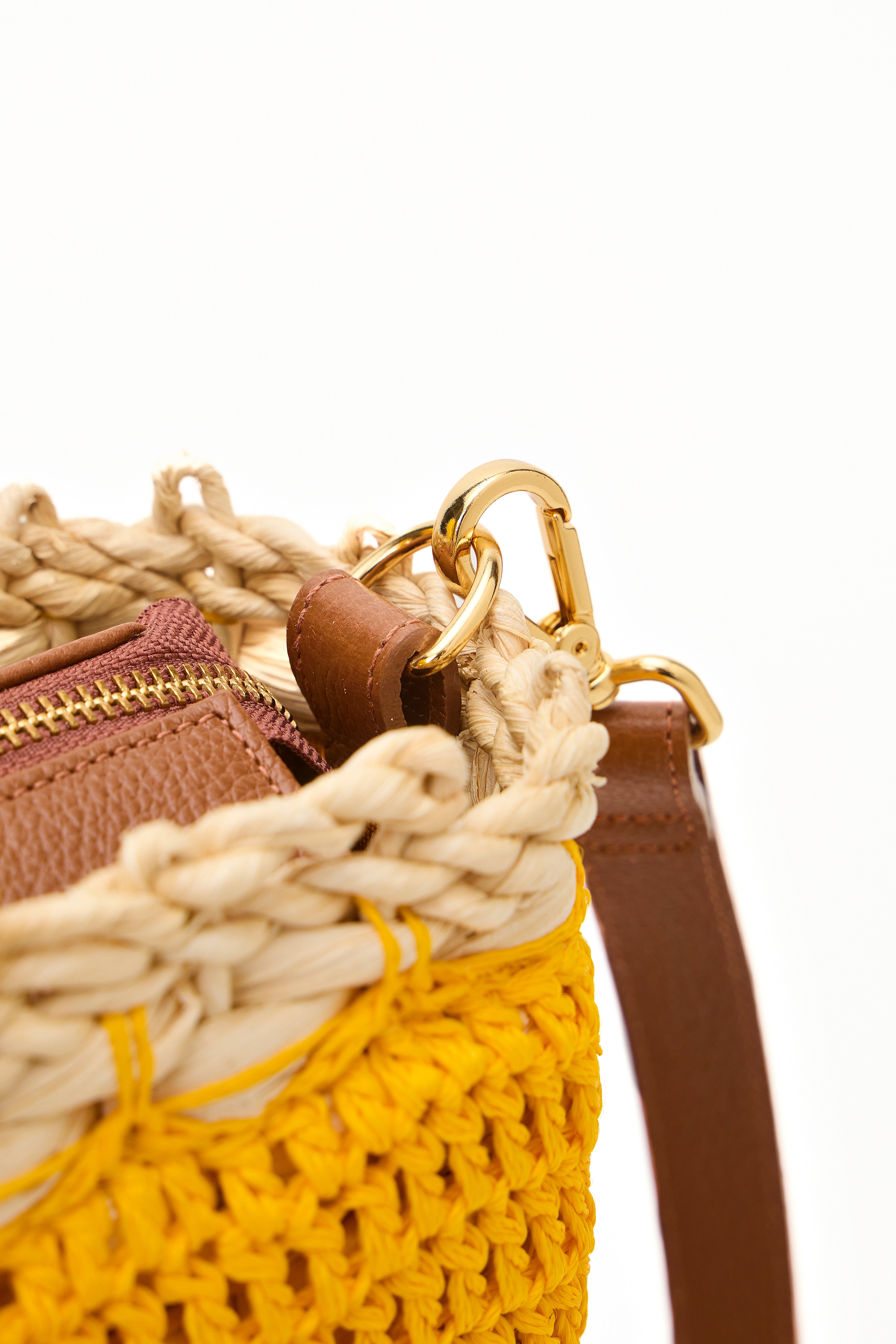 O interior espaçoso é forrado com um tecido leve, ideal para acomodar todos os seus itens essenciais de verão. Além disso, seu fechamento em zíper e couro permite que essa peça possa ser usada em outras ocasiões que não seja praia.
