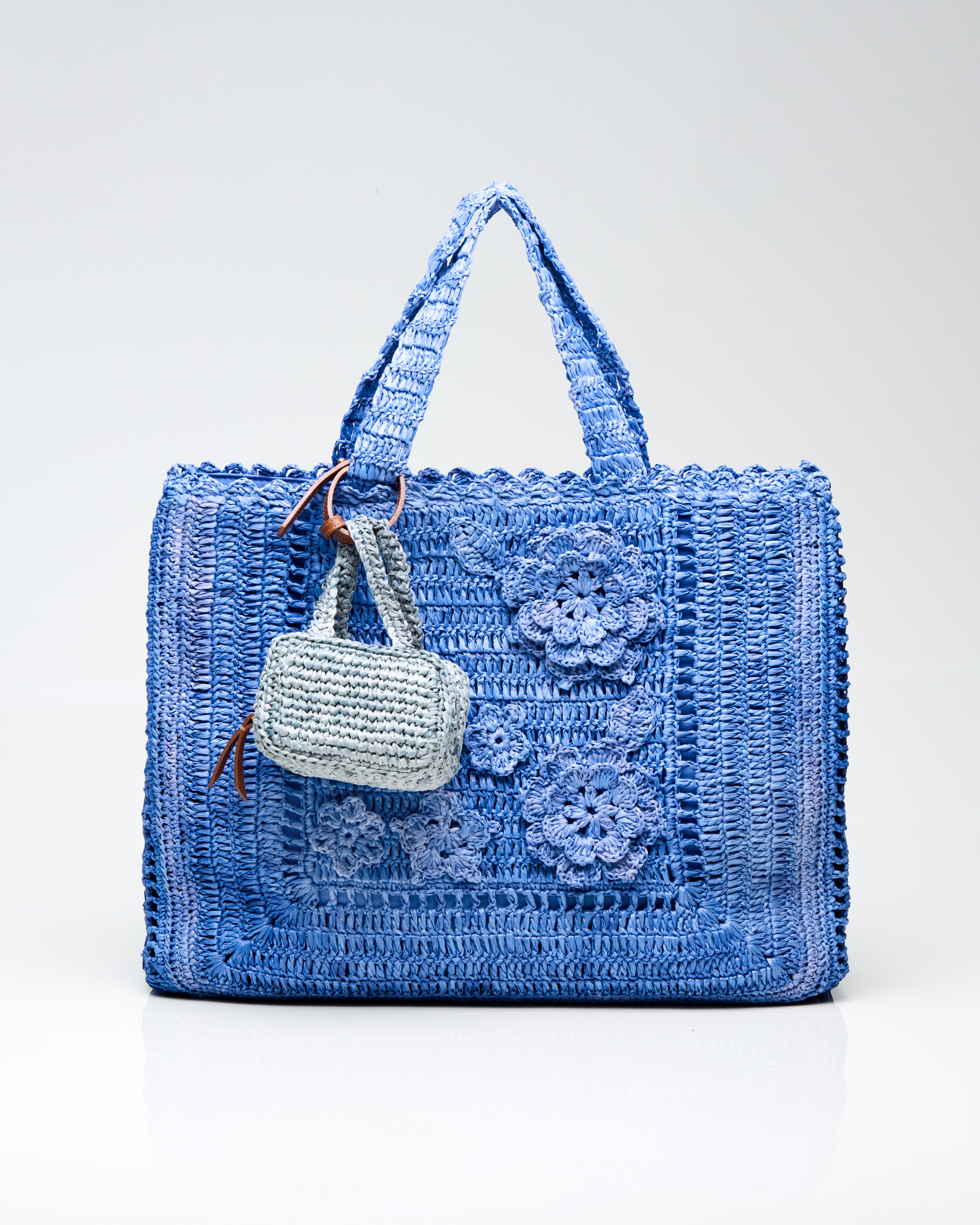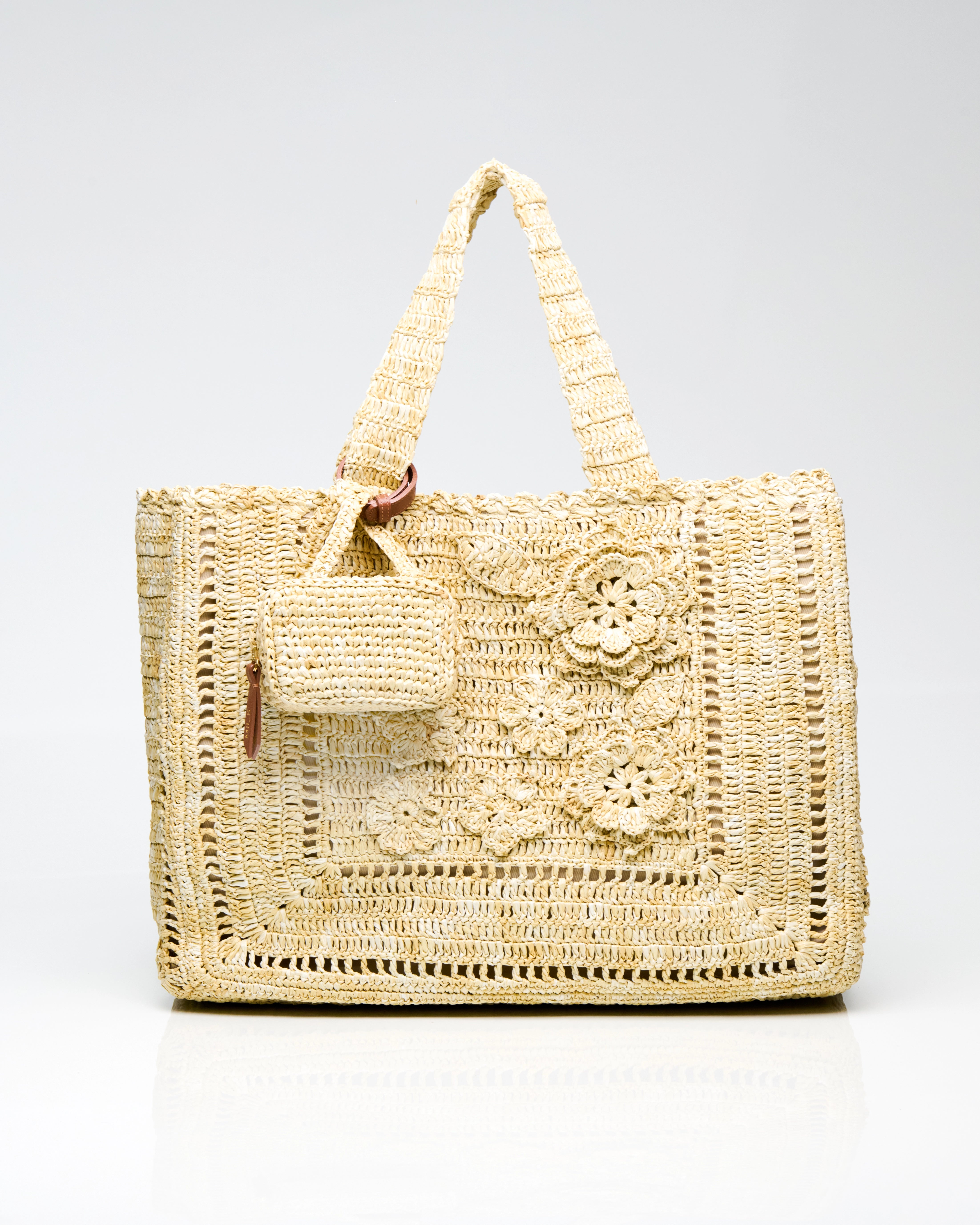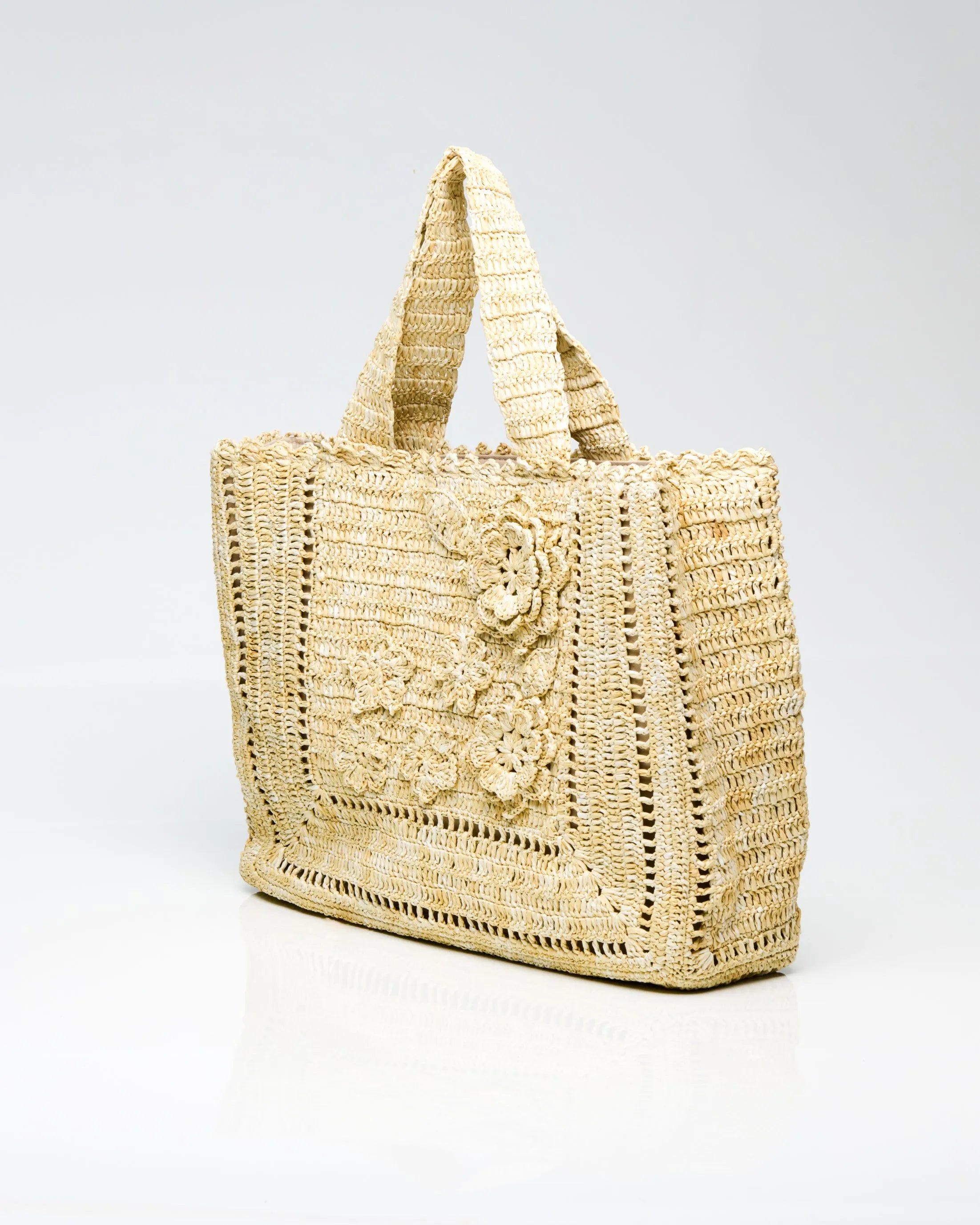 A Bolsa Veraneio é feita com ráfia italiana de viscose e flores trabalhadas à mão, combinando sofisticação e feminilidade. Com alças confortáveis e tamanho versátil, é ideal para o dia a dia, praia ou ocasiões especiais.