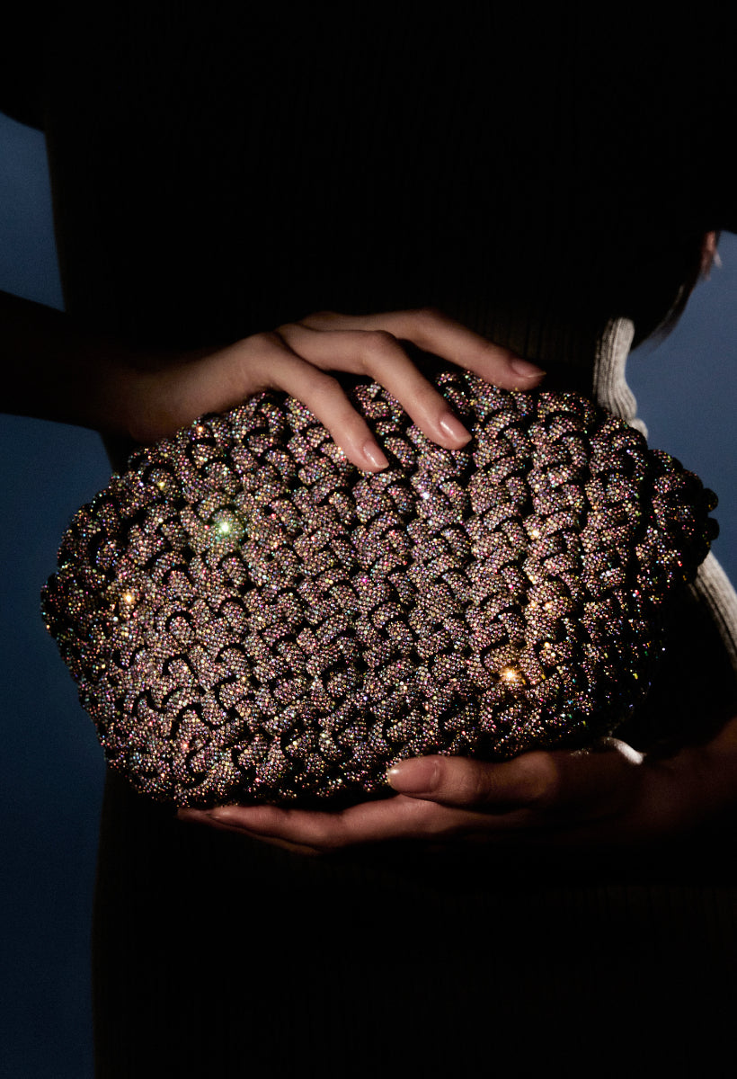 A clutch Iner é uma verdadeira joia. Uma bolsa que chama a atenção por si só e possui espaço suficiente para levar seus itens em um casamento ou uma festa.